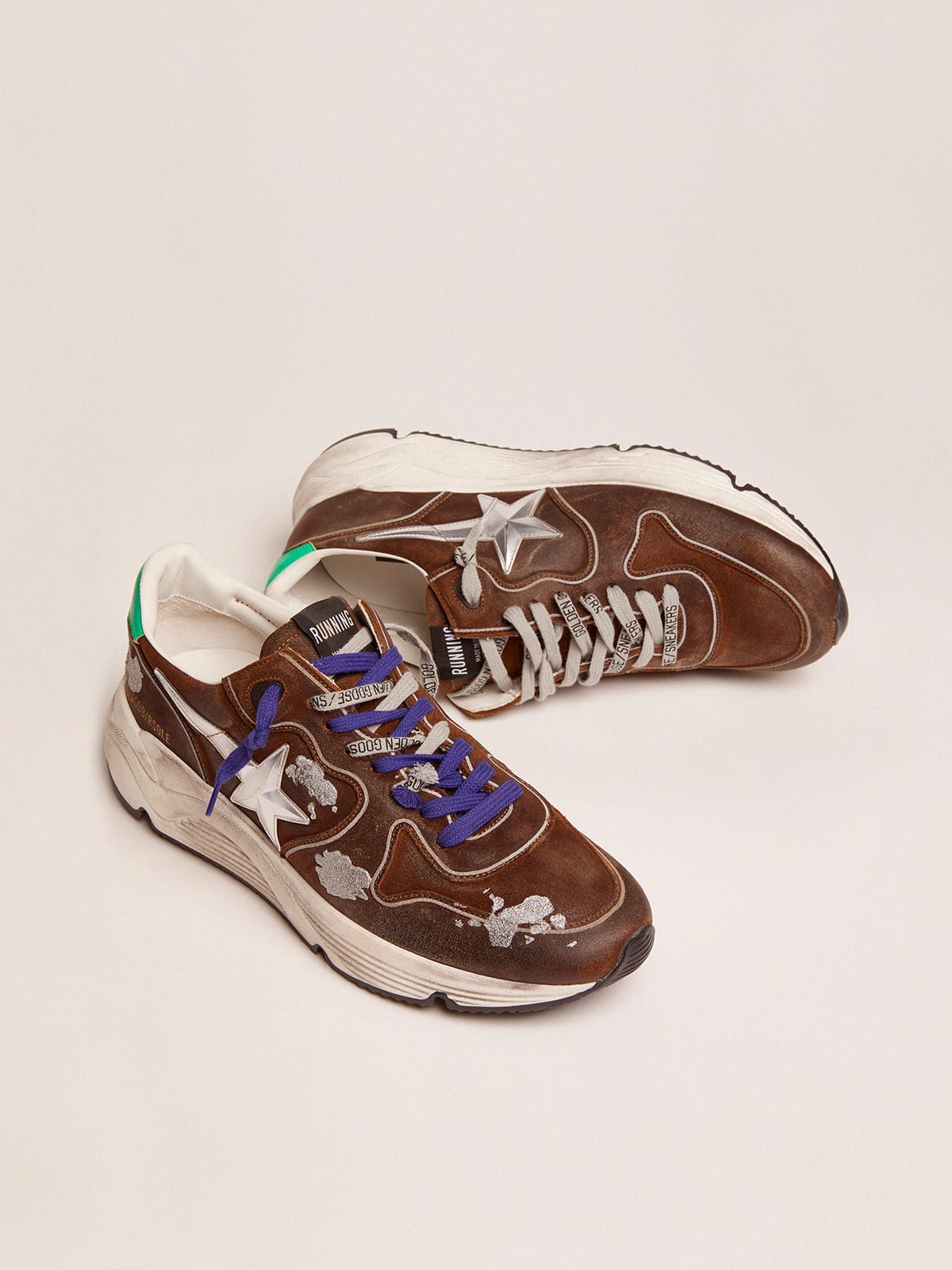 Running Sole sneakers in cognac colored suede with 3D star