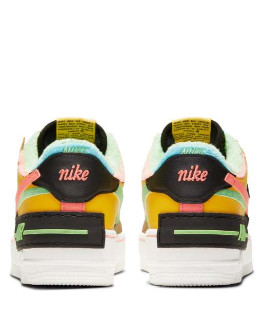 Nike Air Force 1 Shadow Baskets en fausse fourrure Noir et fluo