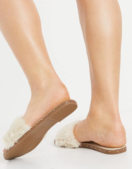 Claquette outlet fausse fourrure, Pimkie Claquettes style sandales en fausse fourrure Beige ASOS outlet