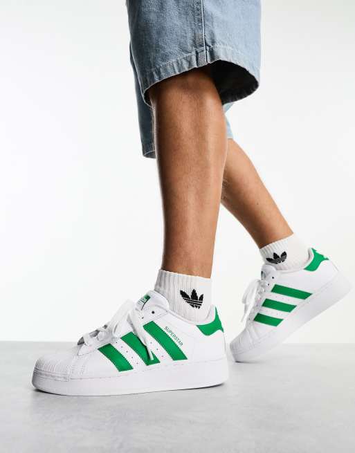 Adidas blanco outlet con verde, Zapatillas de deporte blanco futurista verde Superstar XLG de outlet