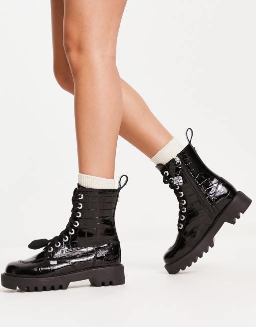 Exclusivit Kickers Kizzie Bottines lacets sur le devant en cuir Noir verni croco