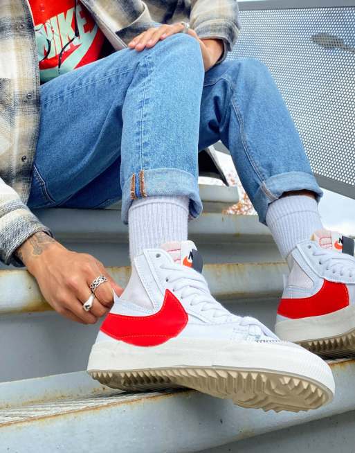 Zapatillas de deporte blancas y rojas Blazer Mid 77 Jumbo de Nike