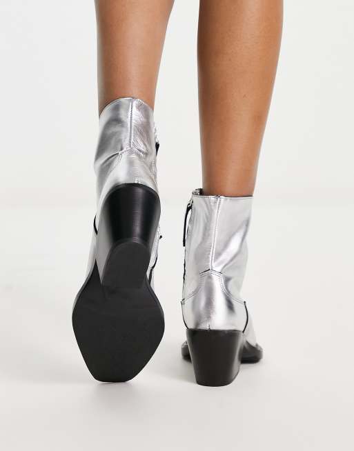 Botines outlet cowboy mango, Botas plateadas estilo cowboy de cuero de Mango outlet