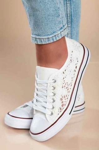 Zapatillas de Novia. Deportivas Blancas con Encaje para Novias