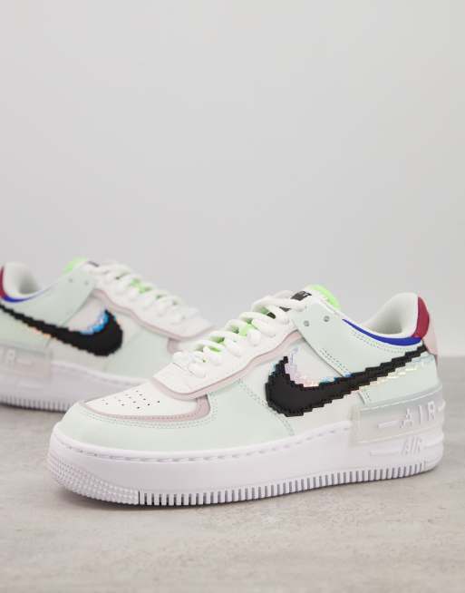 Nike Air Force 1 Shadow sneakers in white barely green and platinum violet