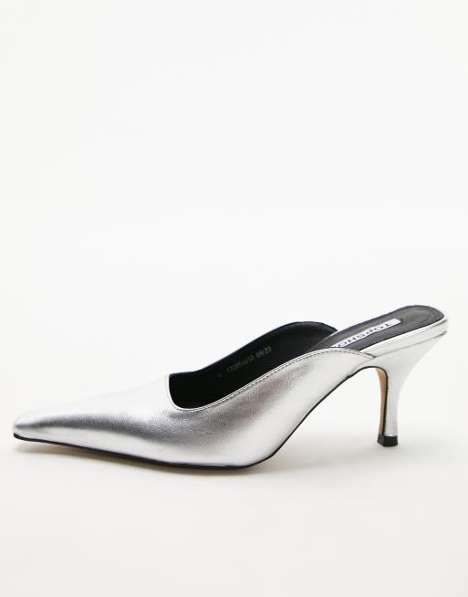 Zapatos de sal n plateados de tac n medio con puntera estrecha de cuero premium Etta de Topshop