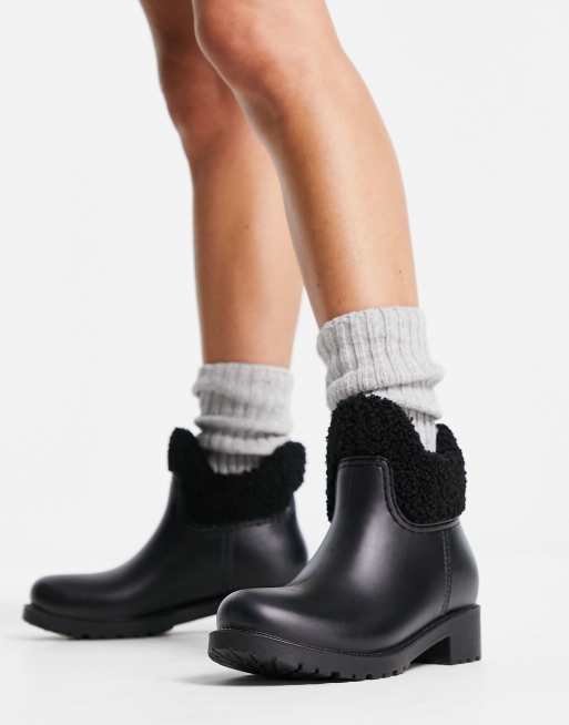 Botas de agua Chelsea negras con forro de borreguito Gold Coast de ASOS DESIGN