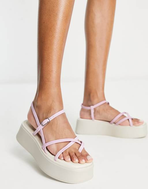 Sandalias rosas con plataforma plana y dise o de tiras de cuero