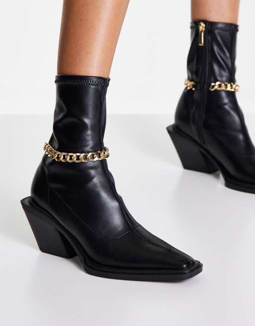 ASOS DESIGN Rally Bottines style western avec d tail cha ne Noir