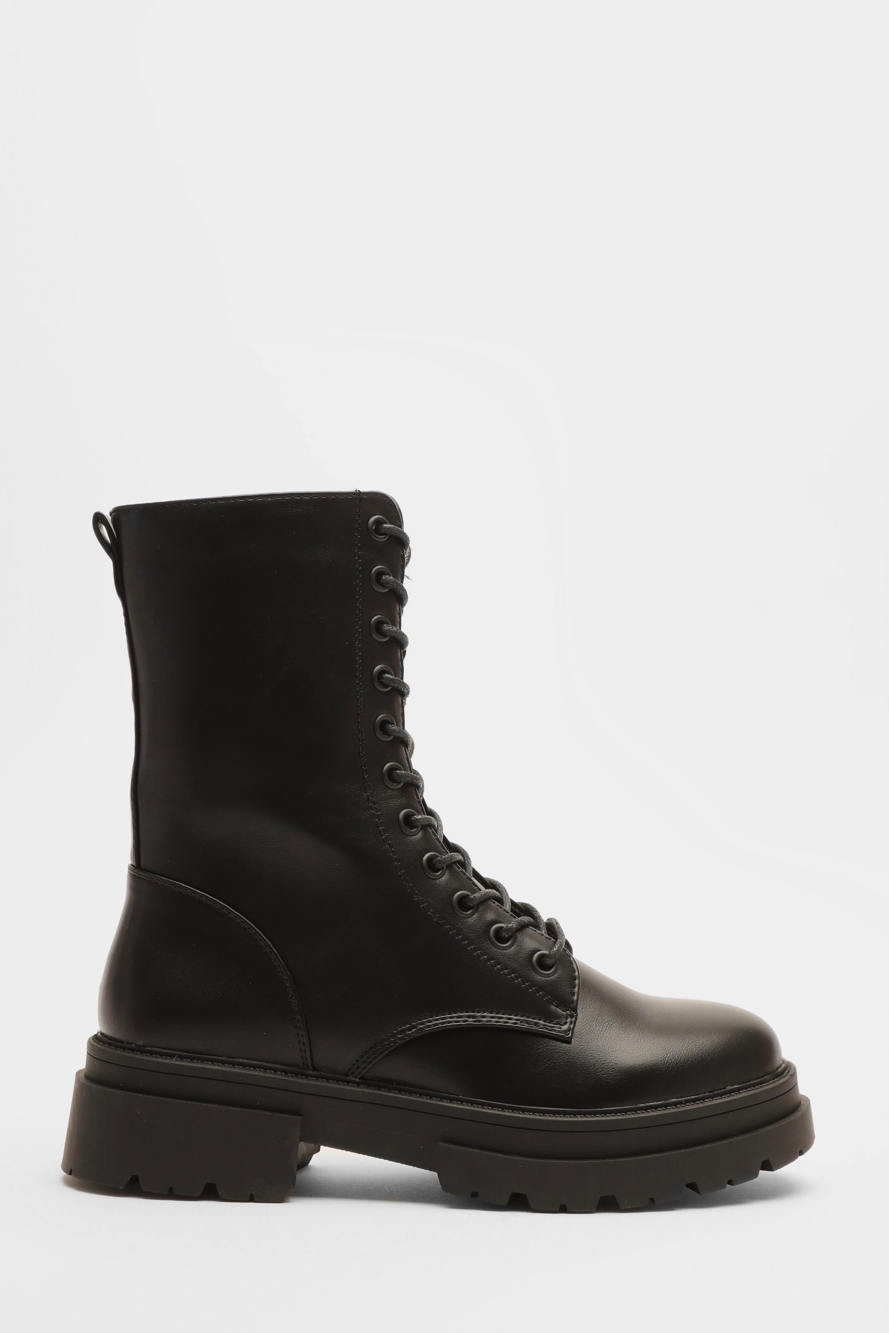 Black Faux Leather Lace Up Boots QUIZ Clothing