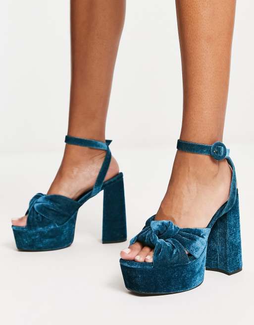 Sandalias azules de tac n con plataforma y detalle anudado Natia de ASOS DESIGN