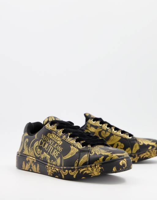 Zapatillas negros y dorados con estampado y logo de Versace Jeans Couture