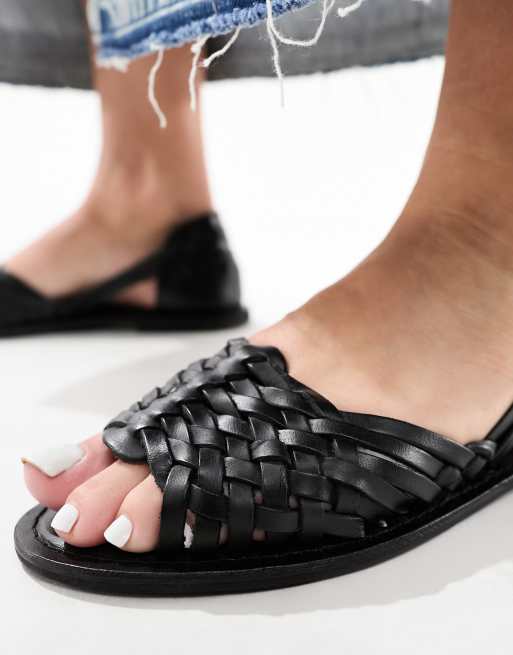 ASOS DESIGN Francis Sandales plates en cuir tress Noir