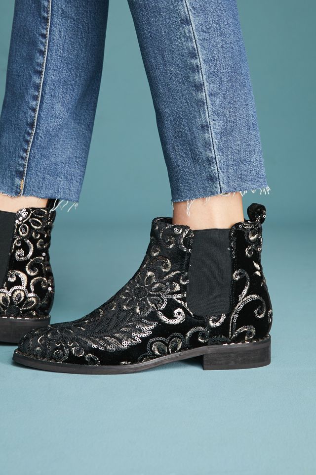 Vanessa Wu Embroidered Velvet Boots Anthropologie UK