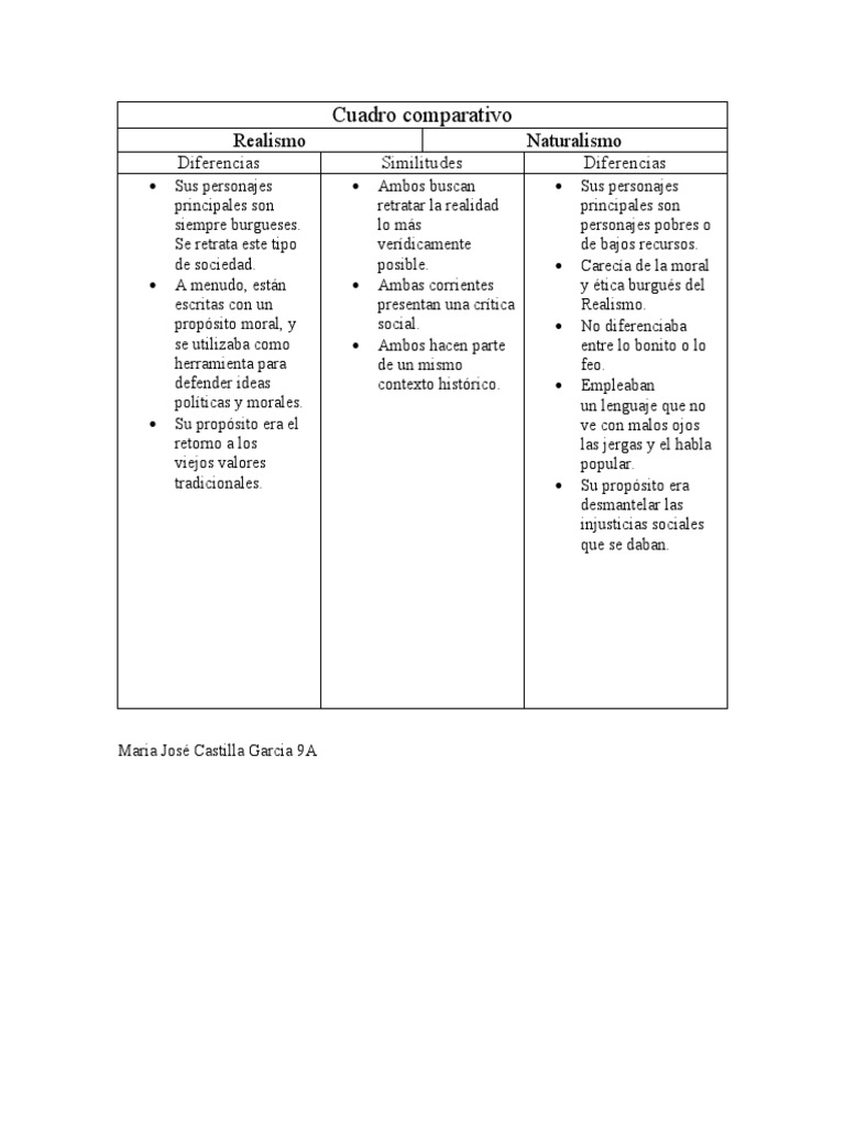 Cuadro Comparativo Realismo Vs Naturalismo PDF