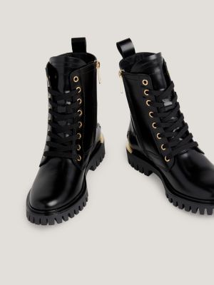Bottines a lacets outlet femme tommy hilfiger, Bottines en cuir brillant crant es lacets Noir Tommy Hilfiger outlet