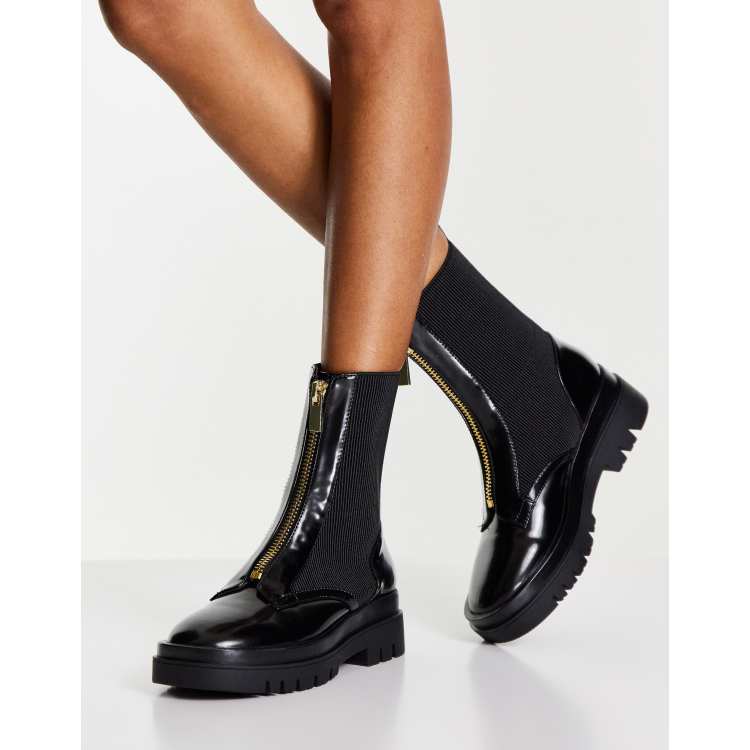 Asos outlet botas militares, Botas militares negras con cremallera de Miss Selfridge ASOS outlet