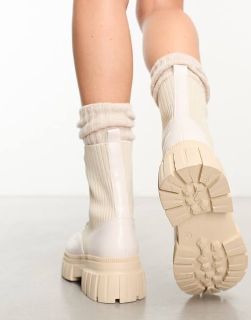 Pimkie Bottes chunky lacets et semelle crant e Cr me ASOS