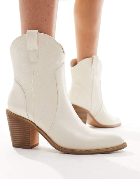 Chaussures femme Bottines blanches talons carr et bouts pointus