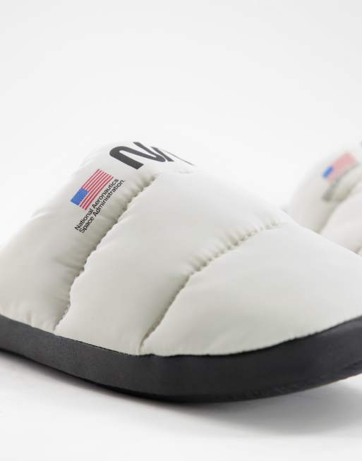Pull Bear Chaussons doudoune logo NASA Blanc ASOS