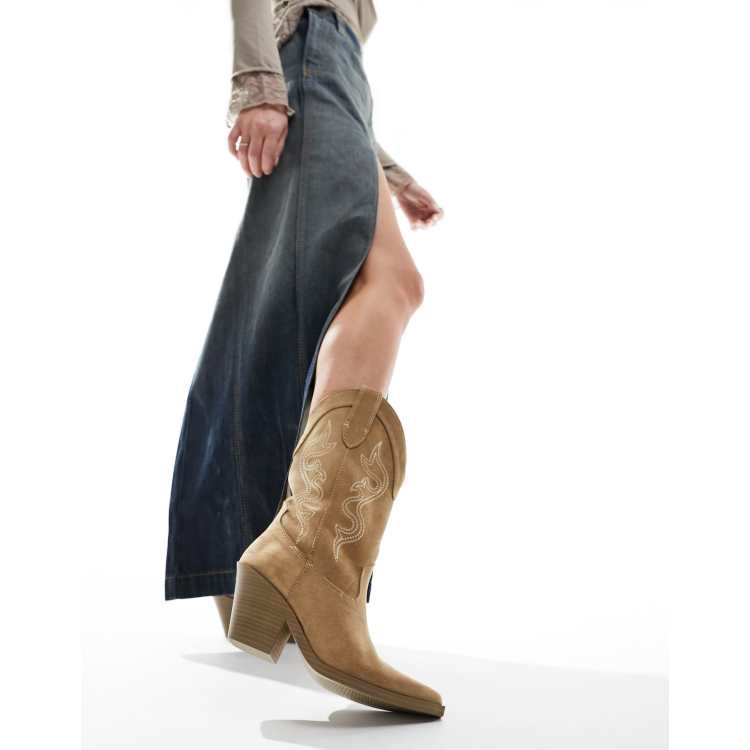 Botas outlet track bershka, Bershka contrast stitch cowboy boots in tan outlet