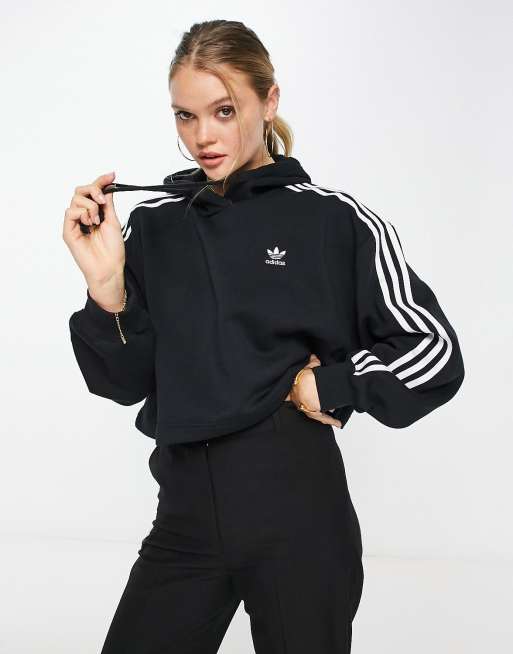 Sudadera corta negra con capucha y dise o de 3 rayas adicolour de