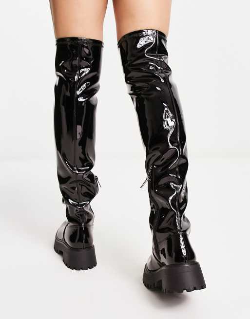 Pull Bear Bottes vernies semelle chunky Noir ASOS