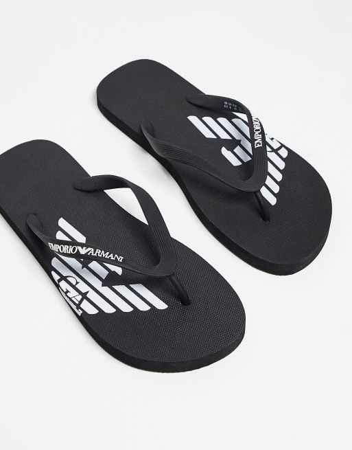 Emporio Armani Bodywear logo flip flops in black ASOS