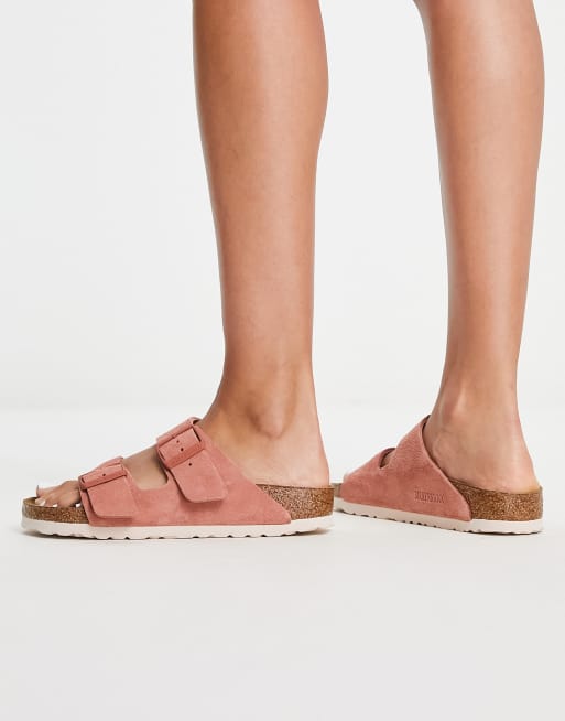 Birkenstock Arizona Sandales plates en daim Rouge terre ASOS