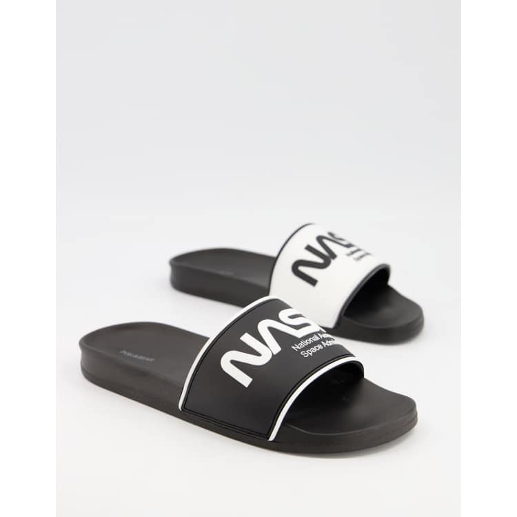 Pull and outlet bear chanclas, Pull Bear Nasa contrast slides in black outlet