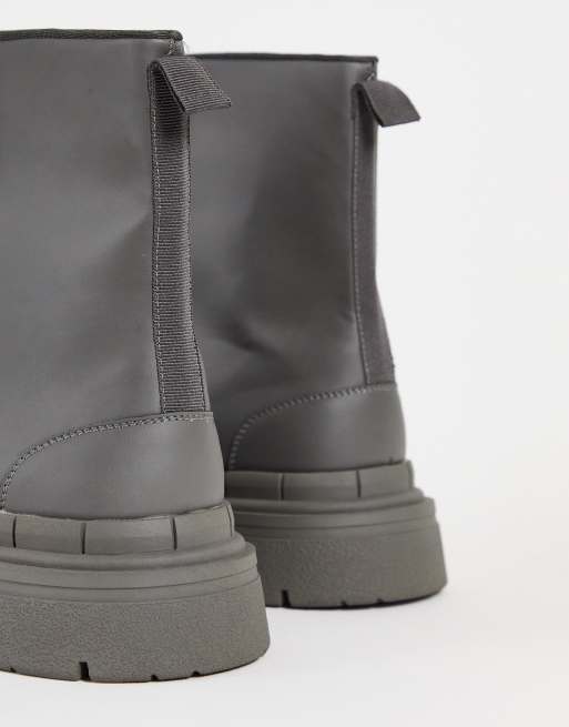 Borcegos gogo outlet, ASOS DESIGN calf boot with zip detail in charcoal faux leather ASOS outlet