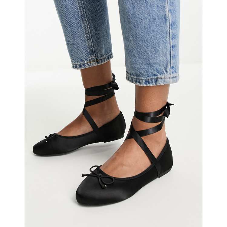 Bailarinas negras con correas anudadas al tobillo Pixie de Raid ASOS