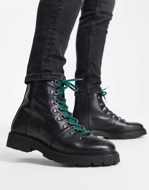 Bottines crant es en cuir lacets Noir Tommy Hilfiger