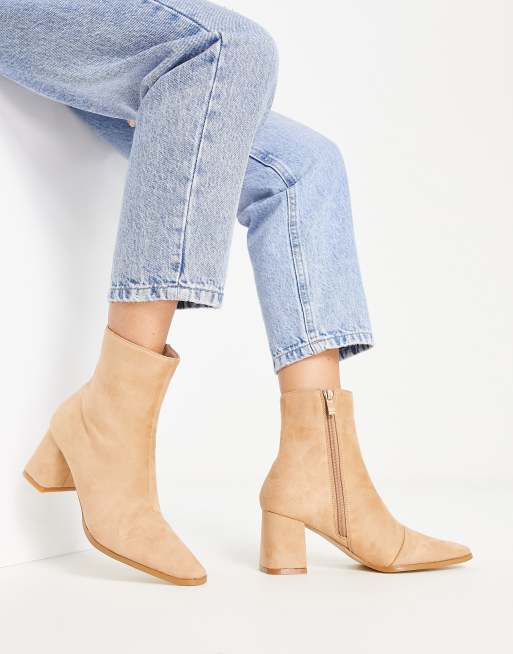 Bottines a outlet talon beige, Chunky high heel chelsea boots in beige suedette outlet