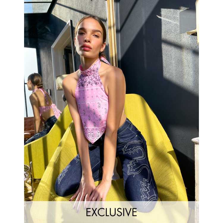 Labelrail x Hana Cross tie back halter neck scarf top in bandana