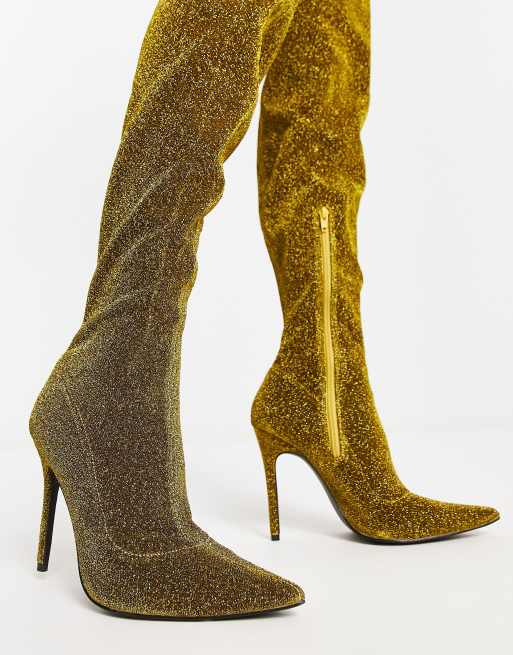 Cuissardes dorées outlet, Bottes Dor es Et Brillantes Bout Pointu Cuissardes Hautes outlet