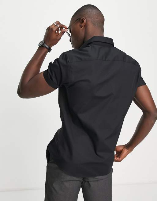 Camisa negra de manga corta y estilo formal de Topman