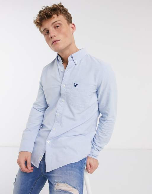 Camisa Oxford de corte slim lisa en azul claro con logo de guila