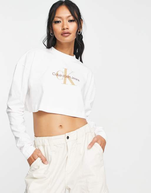 Sudadera corta blanca de manga larga de Calvin Klein Jeans ASOS