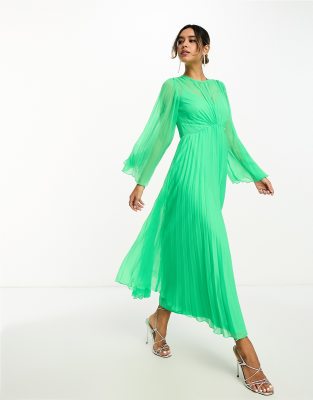 Vestido midi verde plisado con mangas fluidas y lazada en la espalda de ASOS DESIGN