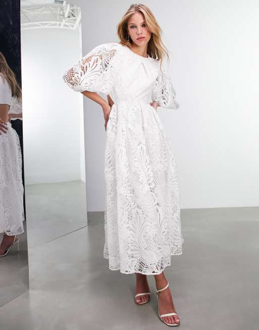 Vestido de novia midi con dise o calado y bordado de encaje Avery de ASOS Edition
