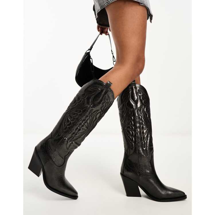 Bronx New Kole western knee boots in gunmetal leather ASOS