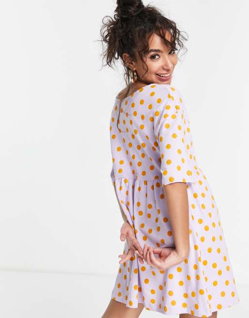 Vestido outlet lunares asos, Vestido corto lila amplio con lunares naranjas y detalle de doble outlet
