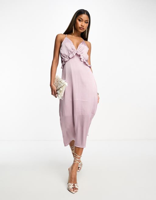 Vestido midi lila ajustado con escote pronunciado de ASOS DESIGN