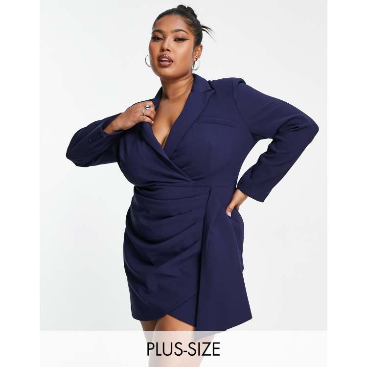 Vestido azul marino cruzado estilo americana de Lavish Alice Plus