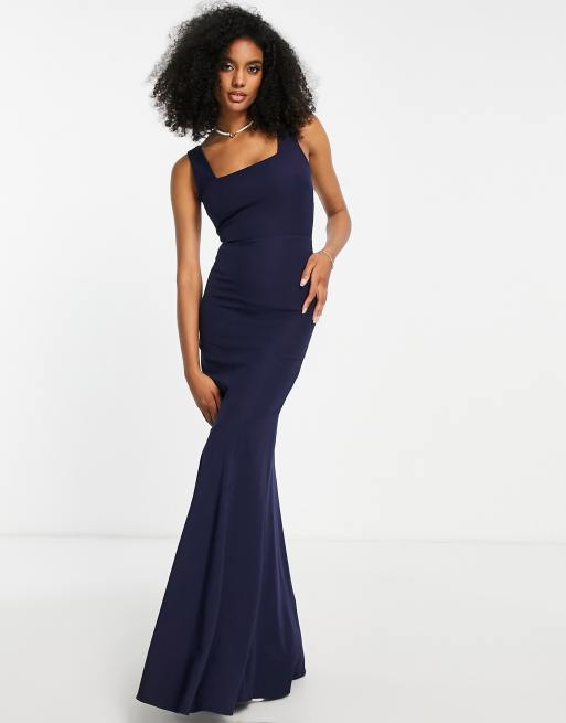 Vestido largo azul marino con escote cuadrado y falda de corte sirena de True Violet