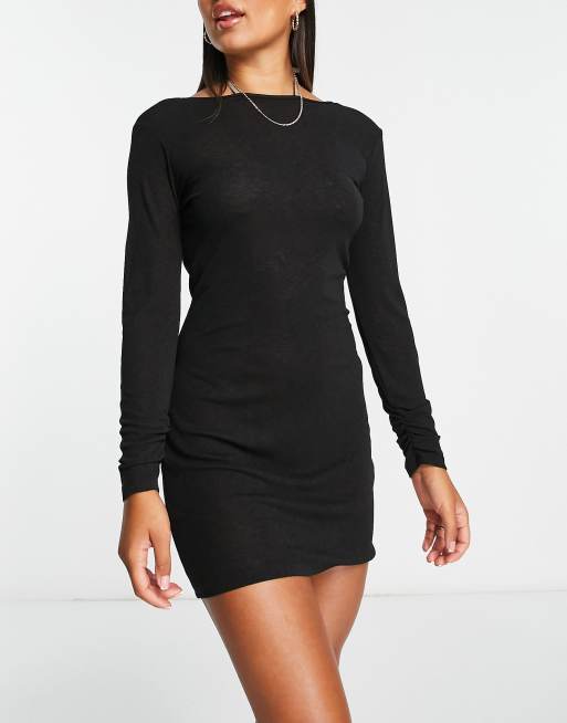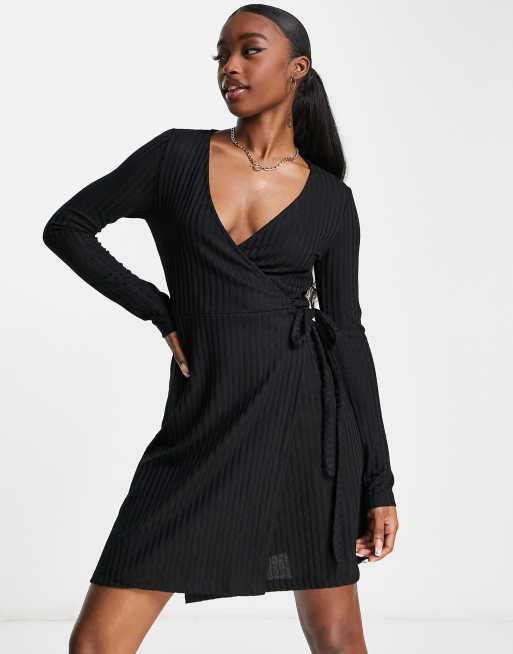 Vestido negro cruzado de manga larga de NA KD ASOS