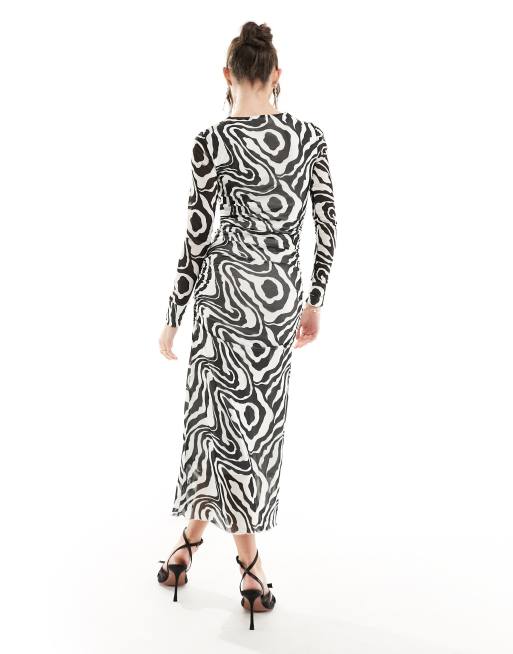Vestido midi blanco y negro con estampado ondulado Rizza de Y.A.S