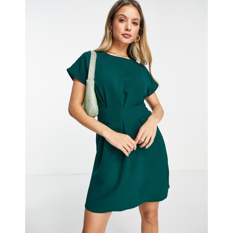Vestido corto verde botella con cintura ce ida de ASOS DESIGN