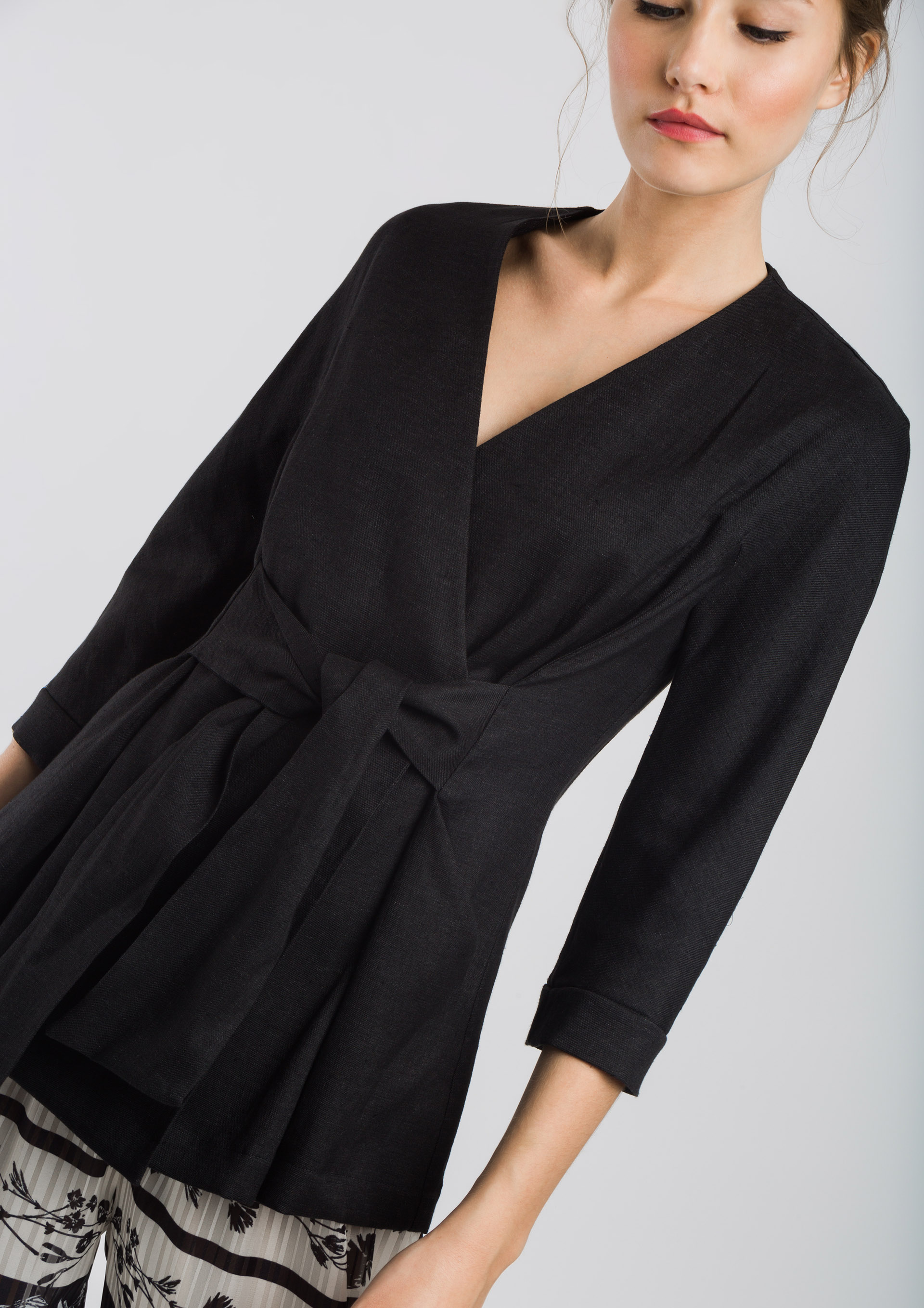 Blusa para Mujer Negro Escote V Manga Larga Bombacha Ocaso Negro